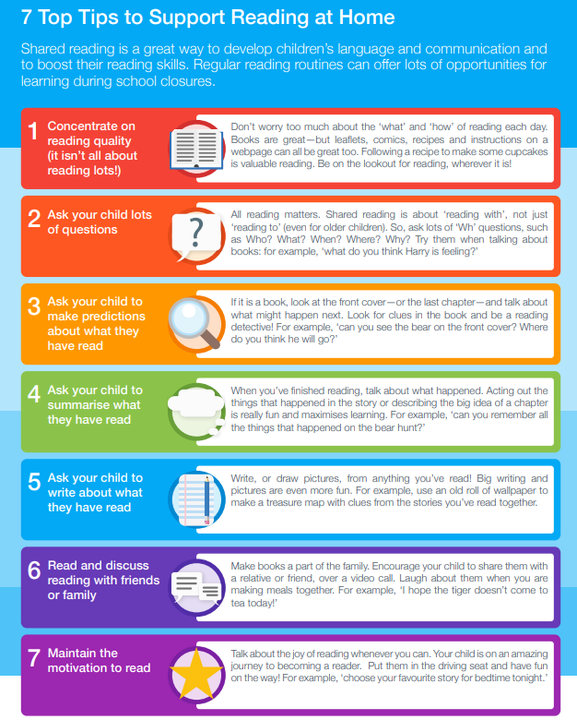 In addition to our strategies in school, we also encourage parents to support with children’s reading development at home. All reading is logged on Boom Reader. We also promote reading within the community by engaging with our local libraries and reading volunteers.  The children are given the opportunity to regularly celebrate reading throughout the year with book fairs, author visits, and special events such as World Book Day.