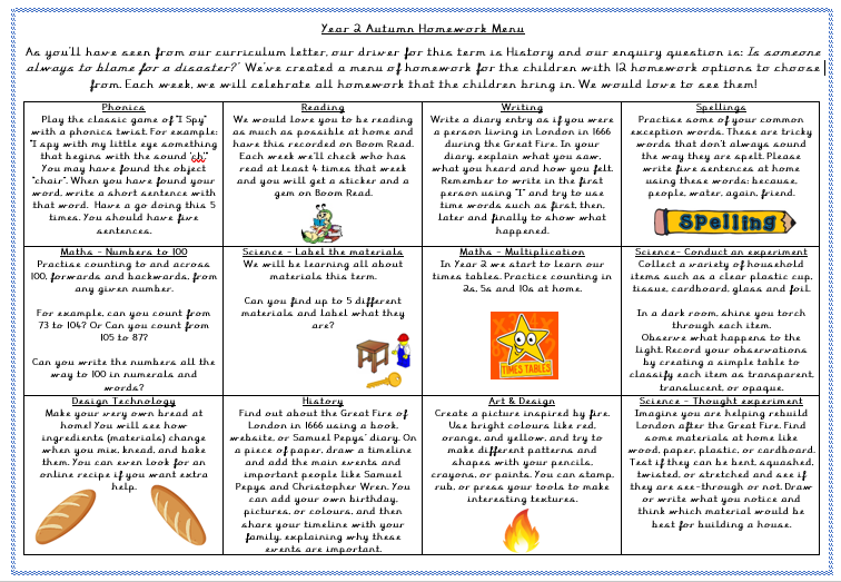 Please see the autumn term homework menu: